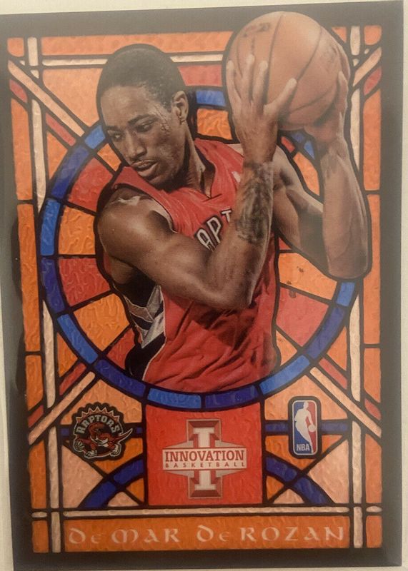 This card is 1 of 2 DeMar DeRozan's card variations in the 2012 Innovation set being tracked by Sports Card Investor, including Stained Glass - Purple /(SSP).