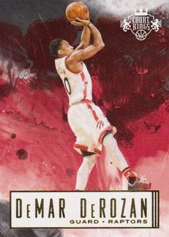 The DeMar DeRozan 2016 Court Kings #40 Base card is 1 of 11 DeMar DeRozan's card variations in the 2016 Court Kings set being tracked by Sports Card Investor, including Sapphire /25, Masterpiece /1, Portraits /175, Expressionists Memorabilia /149, and Portraits - Ruby /75.