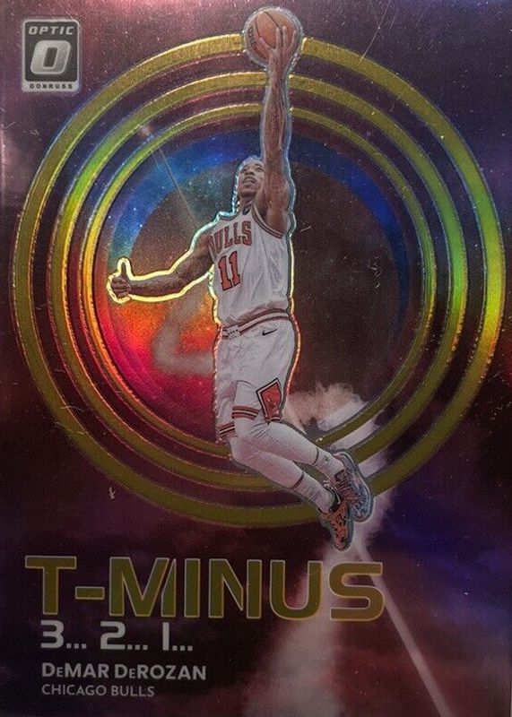 The DeMar DeRozan 2022 Optic #1 T-Minus 3...2...1... - Gold /10 card in Raw condition has not changed in price in the last 30 days and was last sold for $115.00 .