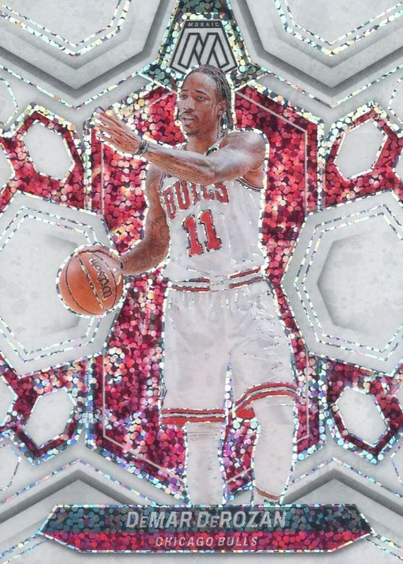 This card is 1 of 16 DeMar DeRozan's card variations in the 2023 Mosaic set being tracked by Sports Card Investor, including Choice Peacock /(SSP), Genesis /(SSP), Glitter /(SSP), Fast Break Gold /10, and Gold /10.