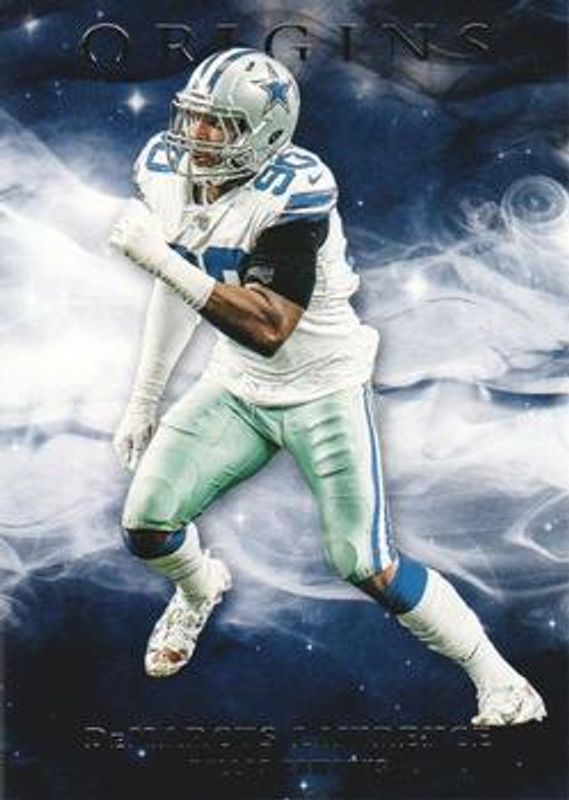 The DeMarcus Lawrence 2019 Origins #100 Base card is 1 of 13 DeMarcus Lawrence's card variations in the 2019 Origins set being tracked by Sports Card Investor, including Red /299, Orange /175, Blue /99, Turquoise /25, and FOTL Purple /13.