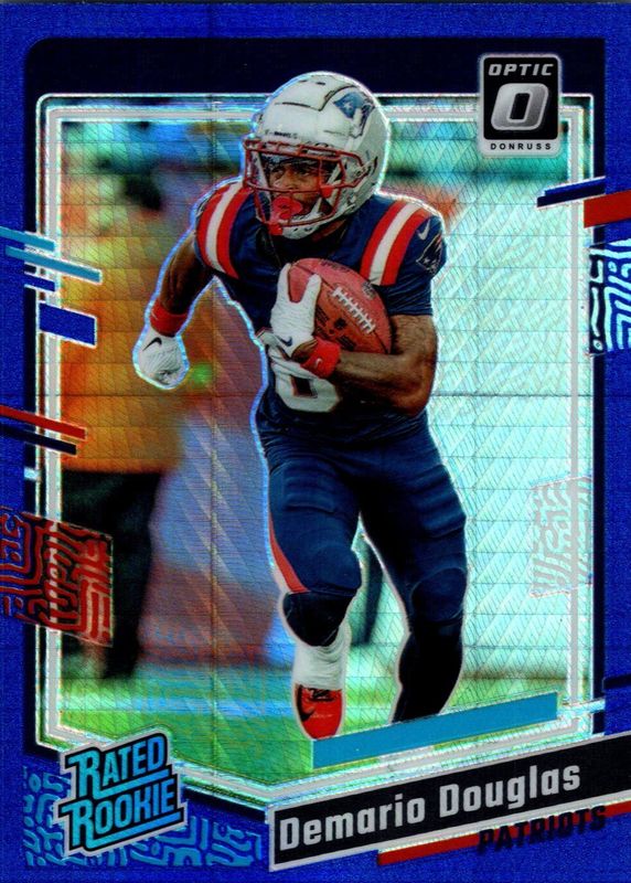 2023 Donruss Optic DEMARIO DOUGLAS Blue Hyper Rated Rookie RC #300 Patriots