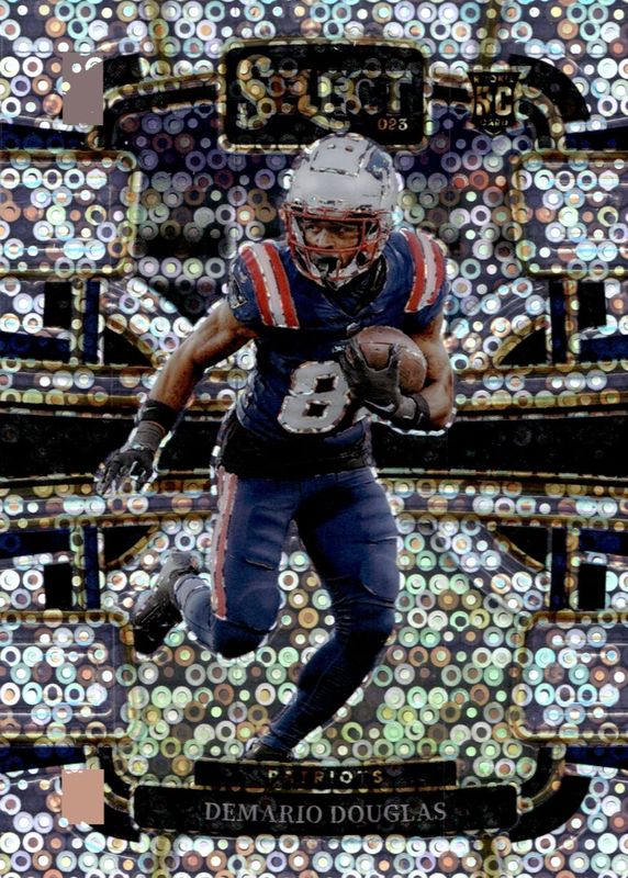 This card is 1 of 63 DeMario Douglas' card variations in the 2023 Select set being tracked by Sports Card Investor, including Concourse, Field Level, Concourse Black & Gold Die-Cut, Concourse Black & Green Die-Cut, and Concourse Black & Red Die-Cut.