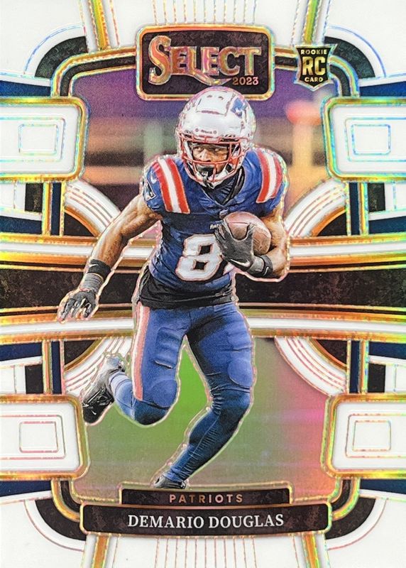 This card is 1 of 63 DeMario Douglas' card variations in the 2023 Select set being tracked by Sports Card Investor, including Concourse, Field Level, Concourse Black & Gold Die-Cut, Concourse Black & Green Die-Cut, and Concourse Black & Red Die-Cut.