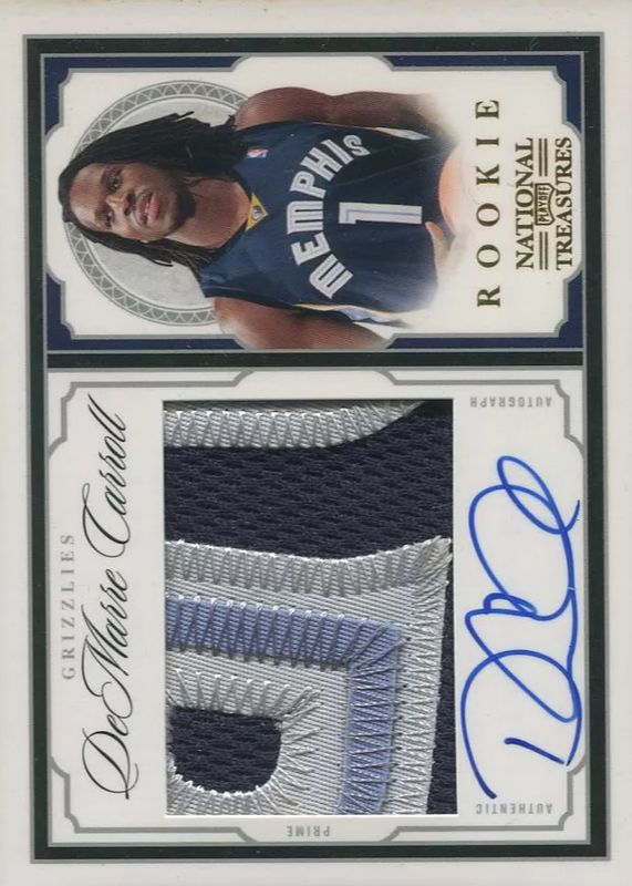 This card is 1 of 3 DeMarre Carroll's card variations in the 2009 National Treasures set being tracked by Sports Card Investor, including Rookie Patch Auto /99, and Rookie Patch Auto - Century Platinum /1.