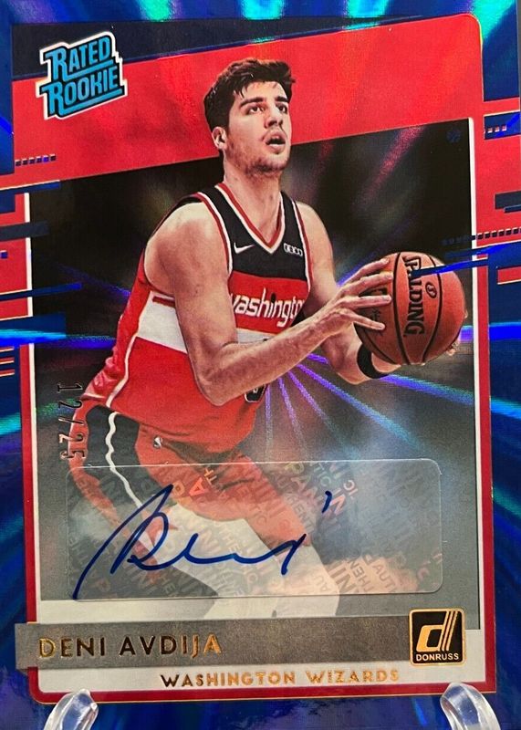 The Deni Avdija 2020 Donruss #205 Rated Rookie Signatures - Holo Blue Laser /25 card in Raw condition has not changed in price in the last 30 days and was last sold for $162.50 .