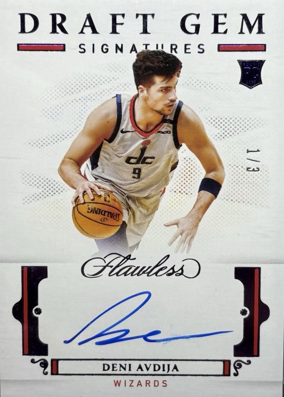 The Deni Avdija 2020 Flawless #DG-DAV Draft Gem Signatures - Amethyst /3 Rookie card in Raw condition has not changed in price in the last 30 days and was last sold for $120.50 .