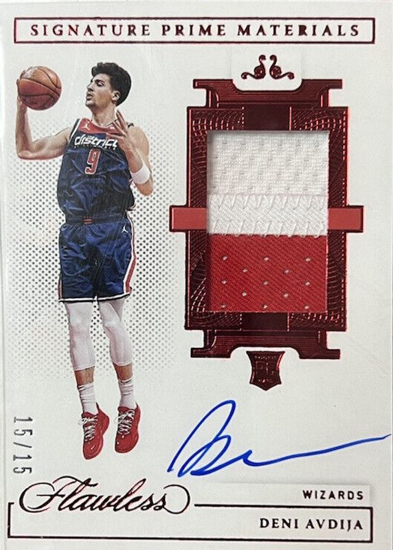 The Deni Avdija 2020 Flawless #SPM-AVD Signature Prime Materials - Ruby /15 Rookie card in Raw condition has not changed in price in the last 30 days and was last sold for $750.00 .