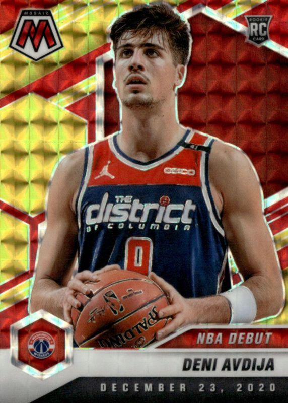 The Deni Avdija 2020 Mosaic #272 NBA Debut - Choice Fusion Red & Yellow /88 Rookie card in Raw condition has not changed in price in the last 30 days and was last sold for $11.50 .