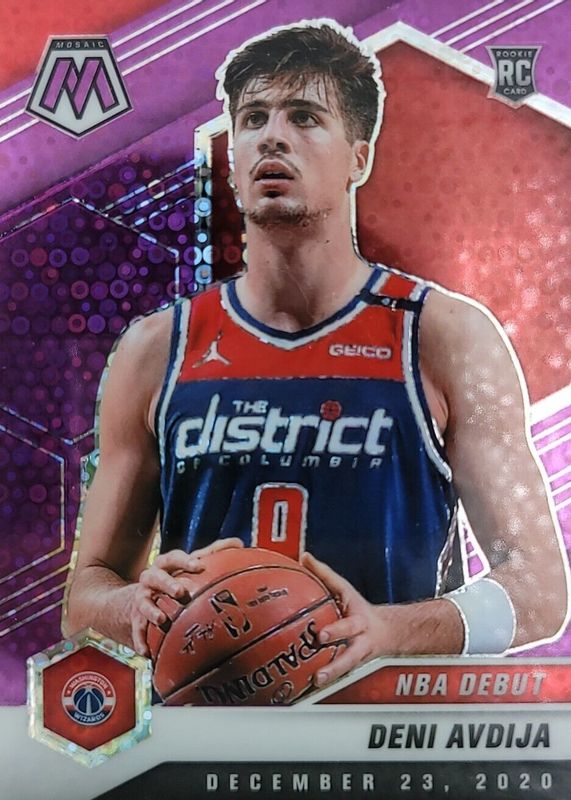 The Deni Avdija 2020 Mosaic #272 NBA Debut - Fast Break Purple /50 Rookie card in Raw condition has not changed in price in the last 30 days and was last sold for $1.00 .