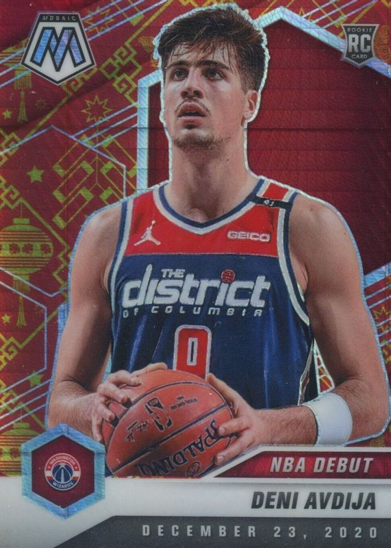The Deni Avdija 2020 Mosaic #272 NBA Debut - Lucky Envelopes /8 Rookie card in Raw condition has not changed in price in the last 30 days and was last sold for $27.19 .