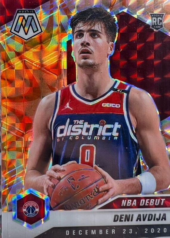 The Deni Avdija 2020 Mosaic #272 NBA Debut - Reactive Orange Rookie card in Raw condition has not changed in price in the last 30 days and was last sold for $0.99 .