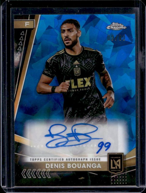 The Denis Bouanga 2024 Topps Chrome MLS Sapphire Edition #SA-DB Sapphire Autographs card is 1 of 23 Denis Bouanga's card variations in the 2024 Topps Chrome MLS Sapphire Edition set being tracked by Sports Card Investor, including Chrome, Sapphire Selections, Sapphire Selections Autographs, Topps 1964 Football, and Chrome - Gold /50.