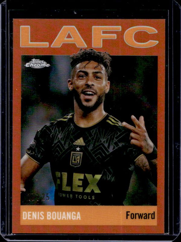 The Denis Bouanga 2024 Topps Chrome MLS #64T-10 Topps 1964 Football - Orange Refractor /25 card is 1 of 64 Denis Bouanga's card variations in the 2024 Topps Chrome MLS set being tracked by Sports Card Investor, including #99 Base, #99b Base, #99 Aqua Lava Refractor, #99 Gold Lava Refractor, and #99 Neon Green Lava Refractor.