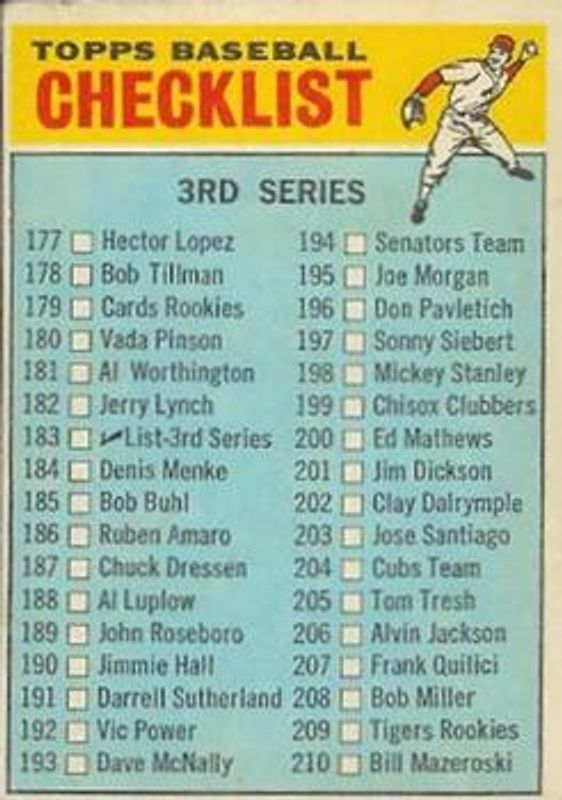 The Denis Menke 1966 Topps Venezuelan #183 Base card is 1 of 2 Denis Menke's card variations in the 1966 Topps Venezuelan set being tracked by Sports Card Investor, including Base.