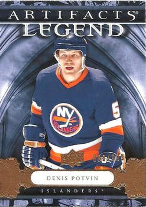 The Denis Potvin 2009 Upper Deck Artifacts #101 Base /699 card is 1 of 7 Denis Potvin's card variations in the 2009 Upper Deck Artifacts set being tracked by Sports Card Investor, including Silver /75, Gold /50, Silver Spectrum /25, Gold Spectrum /10, and Black /5.