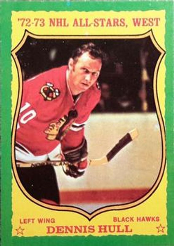 The Dennis Hull 1973 O-Pee-Chee #171 Base card is 1 of 2 Dennis Hull's card variations in the 1973 O-Pee-Chee set being tracked by Sports Card Investor, including Light Back.