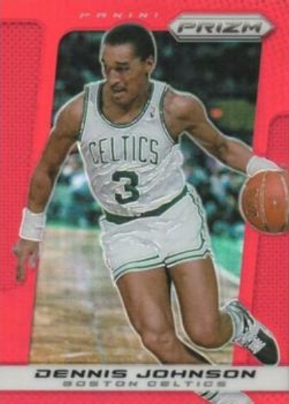 The Dennis Johnson 2013 Prizm #224 Red card is 1 of 13 Dennis Johnson's card variations in the 2013 Prizm set being tracked by Sports Card Investor, including Base, Blue, Green, Red White Blue Mosaic, and Silver.