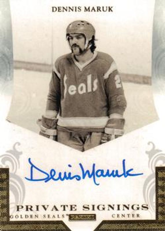 The Dennis Maruk 2012 Limited #DM Private Signings card is 1 of 2 Dennis Maruk's card variations in the 2012 Limited set being tracked by Sports Card Investor, including Private Signings - Platinum /1.