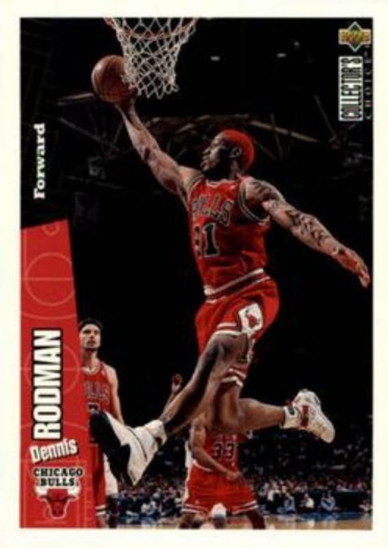 The Dennis Rodman 1996 Upper Deck Collector's Choice Italian #22 Base card is 1 of 3 Dennis Rodman's card variations in the 1996 Upper Deck Collector's Choice Italian set being tracked by Sports Card Investor, including Mini Cards, and Super Action Stick 'Ums.