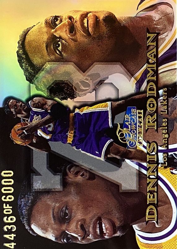 The Dennis Rodman 1998 Flair Showcase #64 Row 1 /1500 card in Raw condition has moved up $8.10 (+64.8%) in the last 30 days and was last sold for $20.60 .