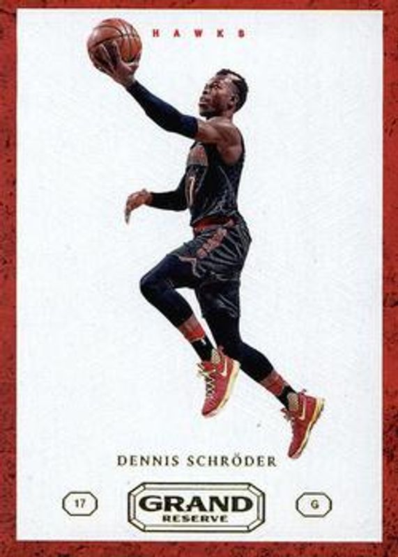 The Dennis Schroder 2016 Grand Reserve #22 Base card is 1 of 9 Dennis Schroder's card variations in the 2016 Grand Reserve set being tracked by Sports Card Investor, including Vintage, Startups, Unbreakable, All Systems Go /(SSP), and Grand Autographs /35.