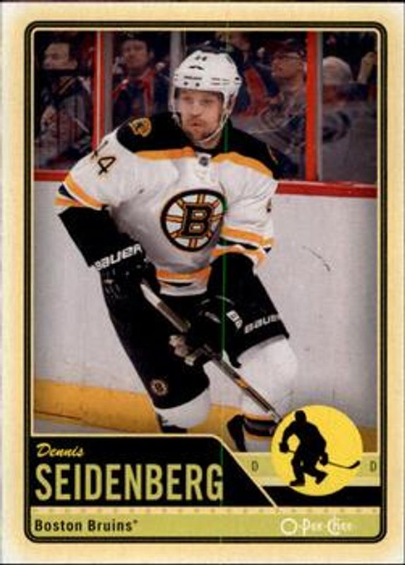 The Dennis Seidenberg 2012 O-Pee-Chee #433 Base card is 1 of 6 Dennis Seidenberg's card variations in the 2012 O-Pee-Chee set being tracked by Sports Card Investor, including Rainbow, Retro, Retro Blank Back, Black Rainbow /100, and Wrapper Redemption Red.