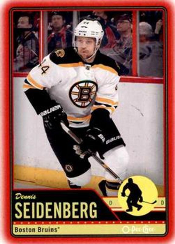 The Dennis Seidenberg 2012 O-Pee-Chee #433 Wrapper Redemption Red card is 1 of 6 Dennis Seidenberg's card variations in the 2012 O-Pee-Chee set being tracked by Sports Card Investor, including Base, Rainbow, Retro, Retro Blank Back, and Black Rainbow /100.