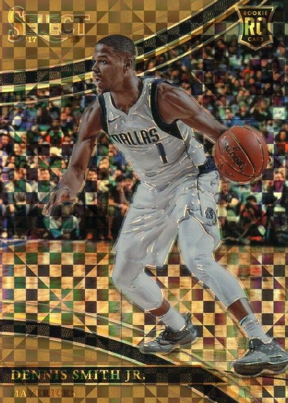 This card is 1 of 10 Dennis Smith Jr.'s card variations in the 2017 Select set being tracked by Sports Card Investor, including Courtside, Courtside Silver, Courtside Zebra /(SSP), Courtside Tie-Dye /25, and Courtside Gold /10.