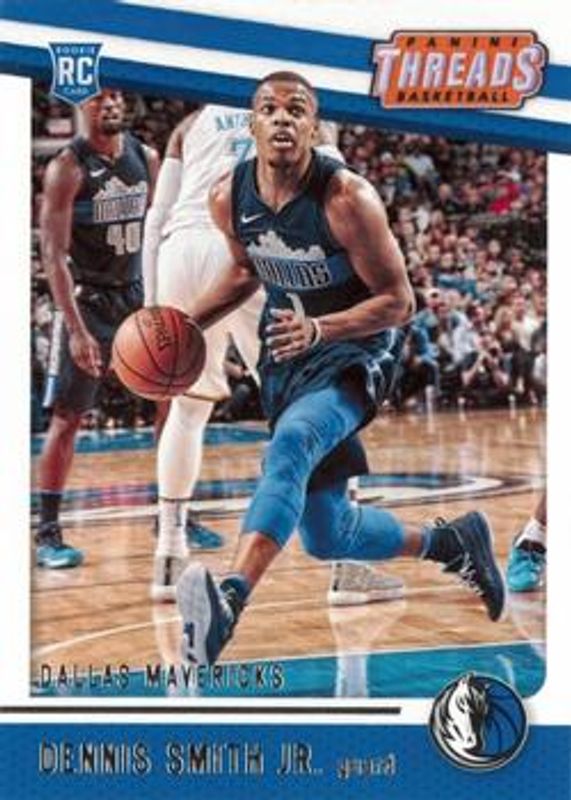 The Dennis Smith Jr. 2017 Threads #80 Base Rookie card is 1 of 9 Dennis Smith Jr.'s card variations in the 2017 Threads set being tracked by Sports Card Investor, including Dazzle /199, Dazzle - Red /99, Dazzle - Blue /25, Dazzle - Gold /10, and Dazzle - Black /1.
