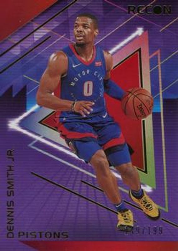 The Dennis Smith Jr. 2020 Recon #33 Red /199 card is 1 of 12 Dennis Smith Jr.'s card variations in the 2020 Recon set being tracked by Sports Card Investor, including Base, Bronze, Holo, Pink, and Spiral.
