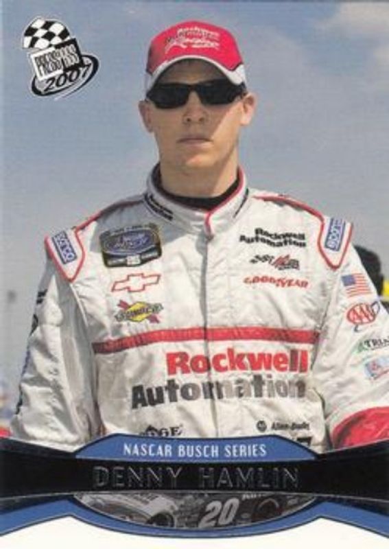 The Denny Hamlin 2007 Press Pass #36 Base card is 1 of 64 Denny Hamlin's card variations in the 2007 Press Pass set being tracked by Sports Card Investor, including #90 Base, #98 Base, #112 Base, #80 Base, and #5 Base.