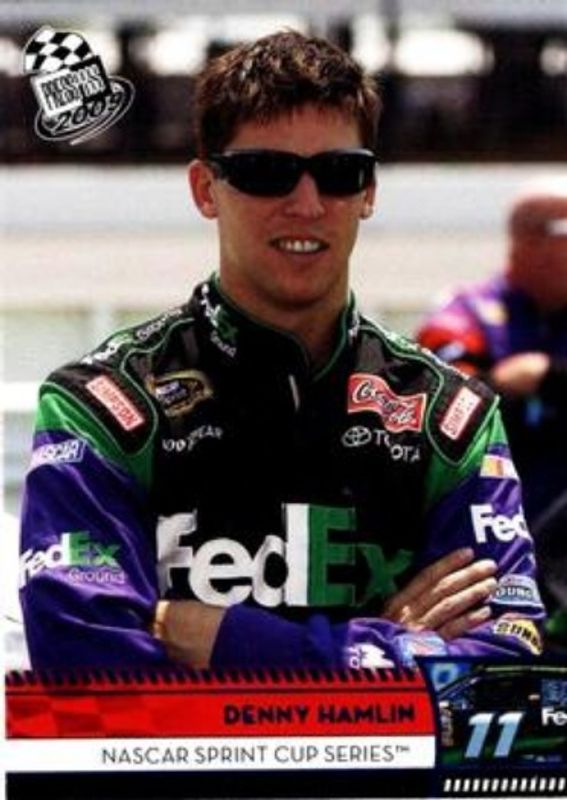 The Denny Hamlin 2009 Press Pass #6 Blue card is 1 of 61 Denny Hamlin's card variations in the 2009 Press Pass set being tracked by Sports Card Investor, including #131 Base, #204 Base, #57 Base, #70 Base, and #6 Base.