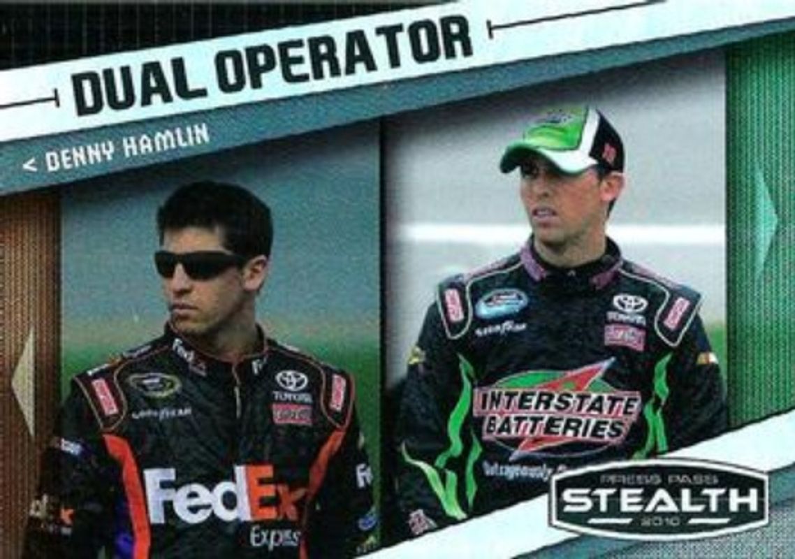 The Denny Hamlin 2010 Press Pass Stealth #65 Base card is 1 of 14 Denny Hamlin's card variations in the 2010 Press Pass Stealth set being tracked by Sports Card Investor, including #12 Base, #80 Base, #80 Black & White, #12 Black & White, and #65 Black & White.