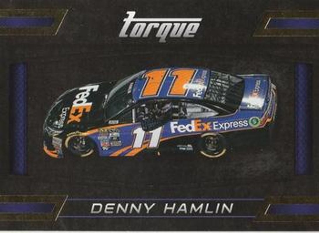 The Denny Hamlin 2016 Torque NASCAR #83 Gold card is 1 of 104 Denny Hamlin's card variations in the 2016 Torque NASCAR set being tracked by Sports Card Investor, including #6 Base, #83 Base, #6 Gold, #6 Blue /125, and #83 Blue /125.