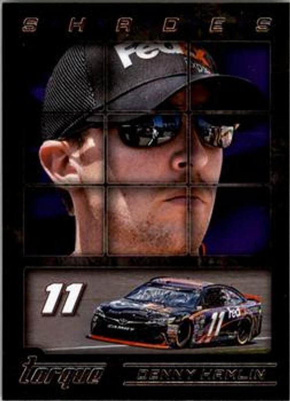 The Denny Hamlin 2016 Torque NASCAR #S15 Shades card is 1 of 104 Denny Hamlin's card variations in the 2016 Torque NASCAR set being tracked by Sports Card Investor, including #6 Base, #83 Base, #6 Gold, #83 Gold, and #6 Blue /125.