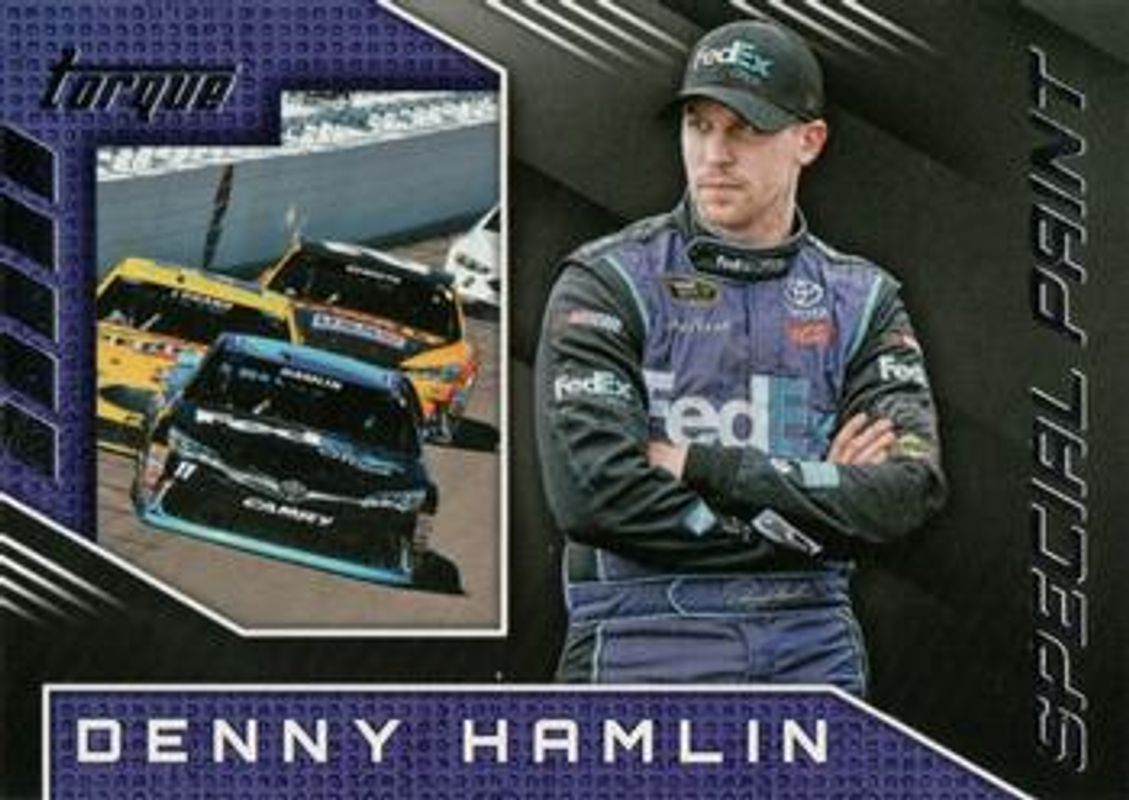 The Denny Hamlin 2016 Torque NASCAR #SP3 Special Paint card is 1 of 104 Denny Hamlin's card variations in the 2016 Torque NASCAR set being tracked by Sports Card Investor, including #6 Base, #83 Base, #6 Gold, #83 Gold, and #6 Blue /125.