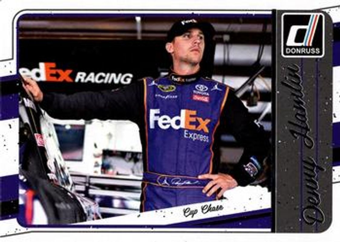 The Denny Hamlin 2017 Donruss NASCAR #129 Base card is 1 of 72 Denny Hamlin's card variations in the 2017 Donruss NASCAR set being tracked by Sports Card Investor, including #112 Base, #6 Base, #41 Base, #146 Base, and #112 Gold Foil /499.