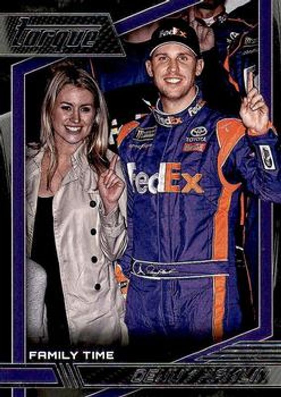 The Denny Hamlin 2017 Torque NASCAR #89 Base card is 1 of 143 Denny Hamlin's card variations in the 2017 Torque NASCAR set being tracked by Sports Card Investor, including Jumbo Firesuit Signatures Purple /10, Jumbo Firesuit Signatures Red /25, Claiming the Chase Holo Silver /99, Combo Materials Signatures Blue /43, and Claiming the Chase.