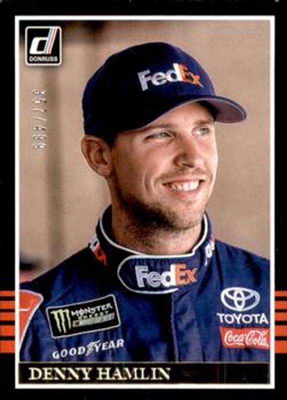 The Denny Hamlin 2018 Donruss NASCAR #128 Gold Foil /499 card is 1 of 60 Denny Hamlin's card variations in the 2018 Donruss NASCAR set being tracked by Sports Card Investor, including #92 Base, #38 Base, #128 Base, #11 Base, and #92 Gold Foil /499.