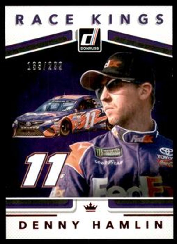The Denny Hamlin 2018 Donruss NASCAR #11 Red Foil /299 card is 1 of 60 Denny Hamlin's card variations in the 2018 Donruss NASCAR set being tracked by Sports Card Investor, including #92 Base, #38 Base, #128 Base, #11 Base, and #92 Gold Foil /499.