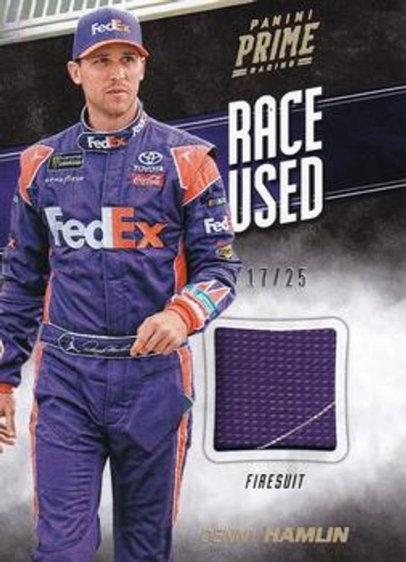 Denny Hamlin 2018 Prime NASCAR #RU-DH Race Used Firesuits Holo Gold /25 RAW Price Guide