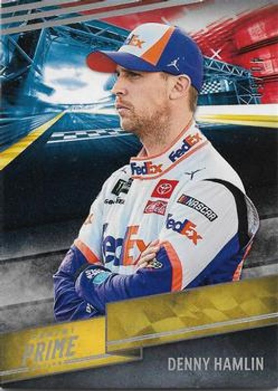 The Denny Hamlin 2019 Prime NASCAR #9 Base /50 card is 1 of 90 Denny Hamlin's card variations in the 2019 Prime NASCAR set being tracked by Sports Card Investor, including #43 Base /50, #76 Base /50, #9 Black /10, #76 Black /10, and #43 Black /10.