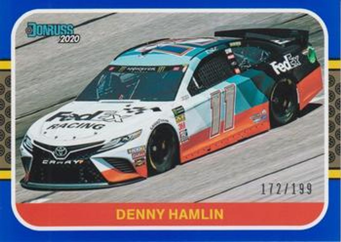 The Denny Hamlin 2020 Donruss NASCAR #194 Blue /199 card is 1 of 121 Denny Hamlin's card variations in the 2020 Donruss NASCAR set being tracked by Sports Card Investor, including #101 Base, #12 Base, #174 Base, #194 Base, and #35 Base.