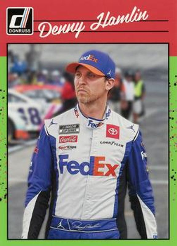 The Denny Hamlin 2023 Donruss NASCAR #131 Lime Green card is 1 of 151 Denny Hamlin's card variations in the 2023 Donruss NASCAR set being tracked by Sports Card Investor, including #47 Base, #124 Base, #131 Base, #14 Base, and #124 Carolina Blue.
