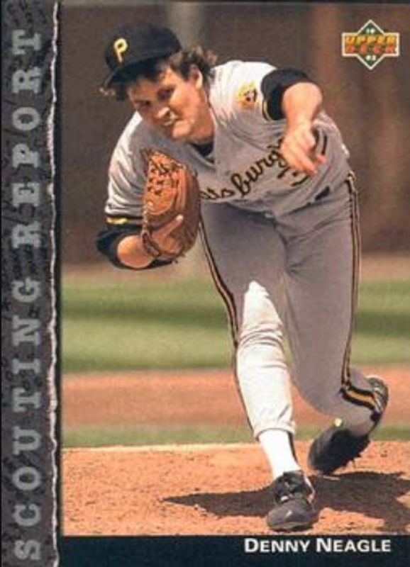 The Denny Neagle 1992 Upper Deck #SR17 Scouting Report card is 1 of 5 Denny Neagle's card variations in the 1992 Upper Deck set being tracked by Sports Card Investor, including #426 Base, #748 Base, #426 Gold Hologram, and #748 Gold Hologram.