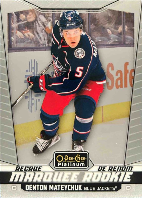 The Denton Mateychuk 2024 O-Pee-Chee Platinum #213 Base Rookie card is 1 of 15 Denton Mateychuk's card variations in the 2024 O-Pee-Chee Platinum set being tracked by Sports Card Investor, including Neon Yellow Surge, Pink Magma, Rainbow, Sunset, and Violet Pixels /299.