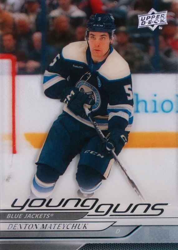 This card is 1 of 43 Denton Mateychuk's card variations in the 2024 Upper Deck Extended Series set being tracked by Sports Card Investor, including Base, Young Guns Base, Clear Cut, Outburst, and Young Guns - Outburst Silver.