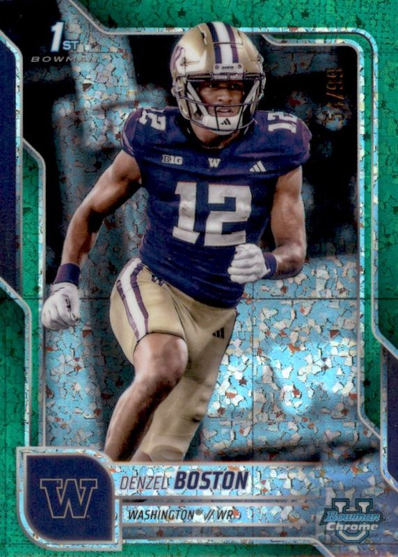 Recent Sales of Denzel Boston 2025 Bowman Chrome University #34 Green Mini-Diamond Refractor /99 (1st) Raw