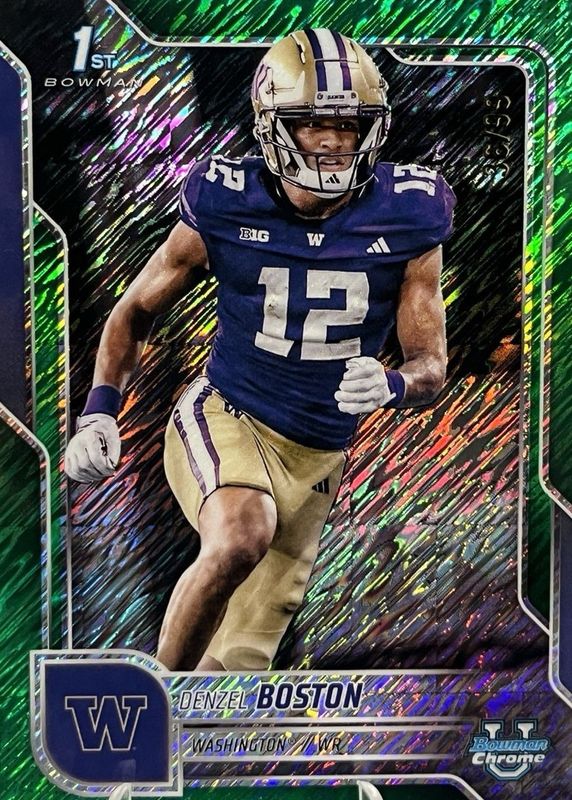 2025 Bowman Chrome University Denzel Boston /99 Green Shimmer 1st Washington